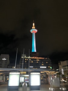 丁度好きなブルーに光る京都タワーの